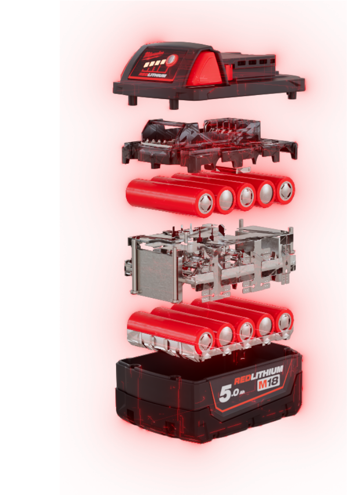 V naši ekskluzivni integraciji kemije, zasnove ohišja in vezja zagotavljamo vrhunsko zmogljivost v najzahtevnejših okoljih. Akumulatorji REDLITHIUM™ omogočajo več delovanja tekom dneva in v času celotne življenjske dobe akumulatorja.